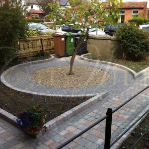 You can a paving circle which is empty in the middle and insert a flower bed or evenĀ a water feature into it. Lighting can be added into paving circles or paving borders to bring your patio or driveway to life at night!