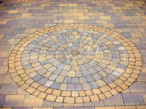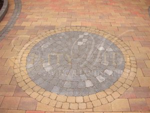 Depending on the paving, you can choose different colours and even a different type of paving block as your feature. For example on standard paving like Lismore from Kilsara, you can add beautiful granite sets as a border and as a paving circle.
